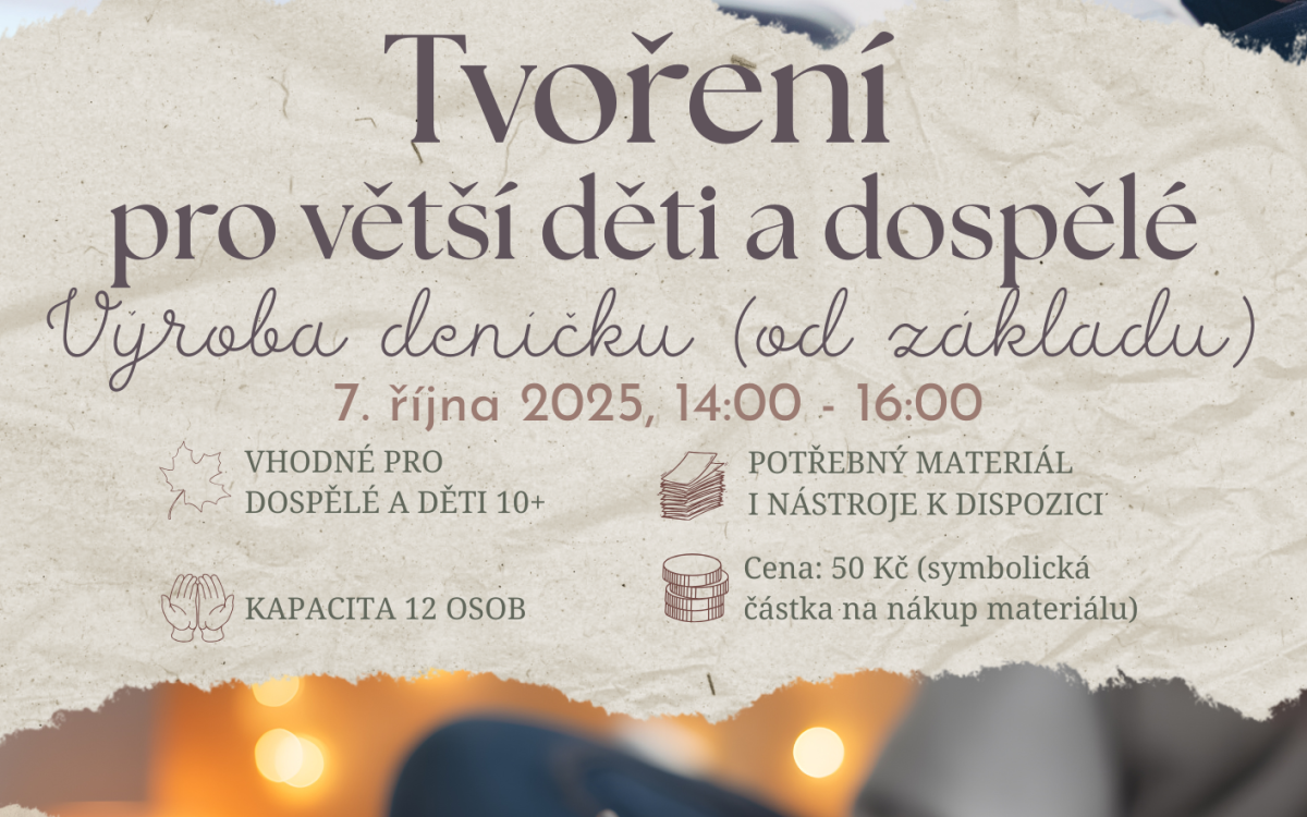 Již teď se můžete hlásit na tvoření pro větší děti a dospělé. Tentokrát budeme vyrábět deníček.
