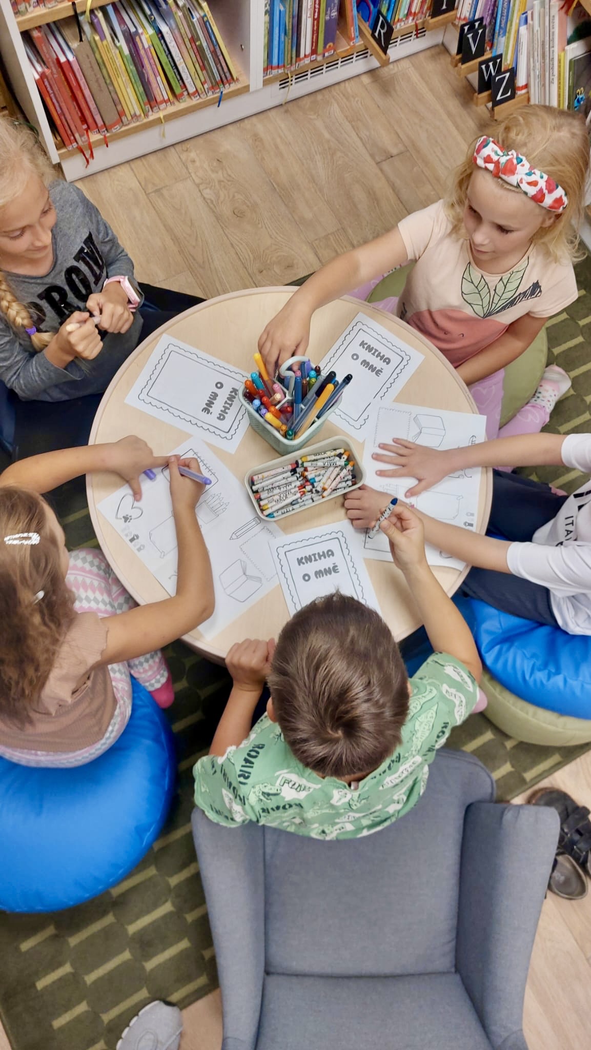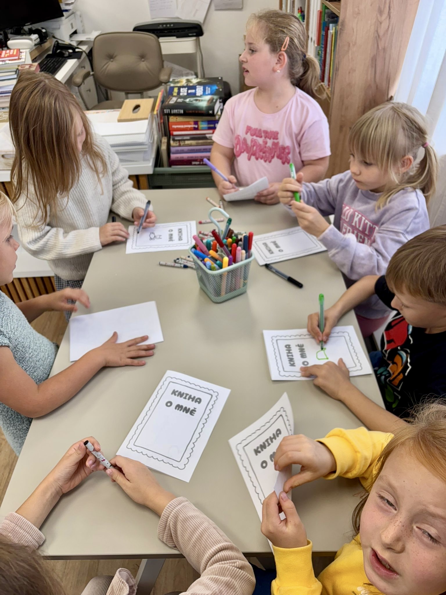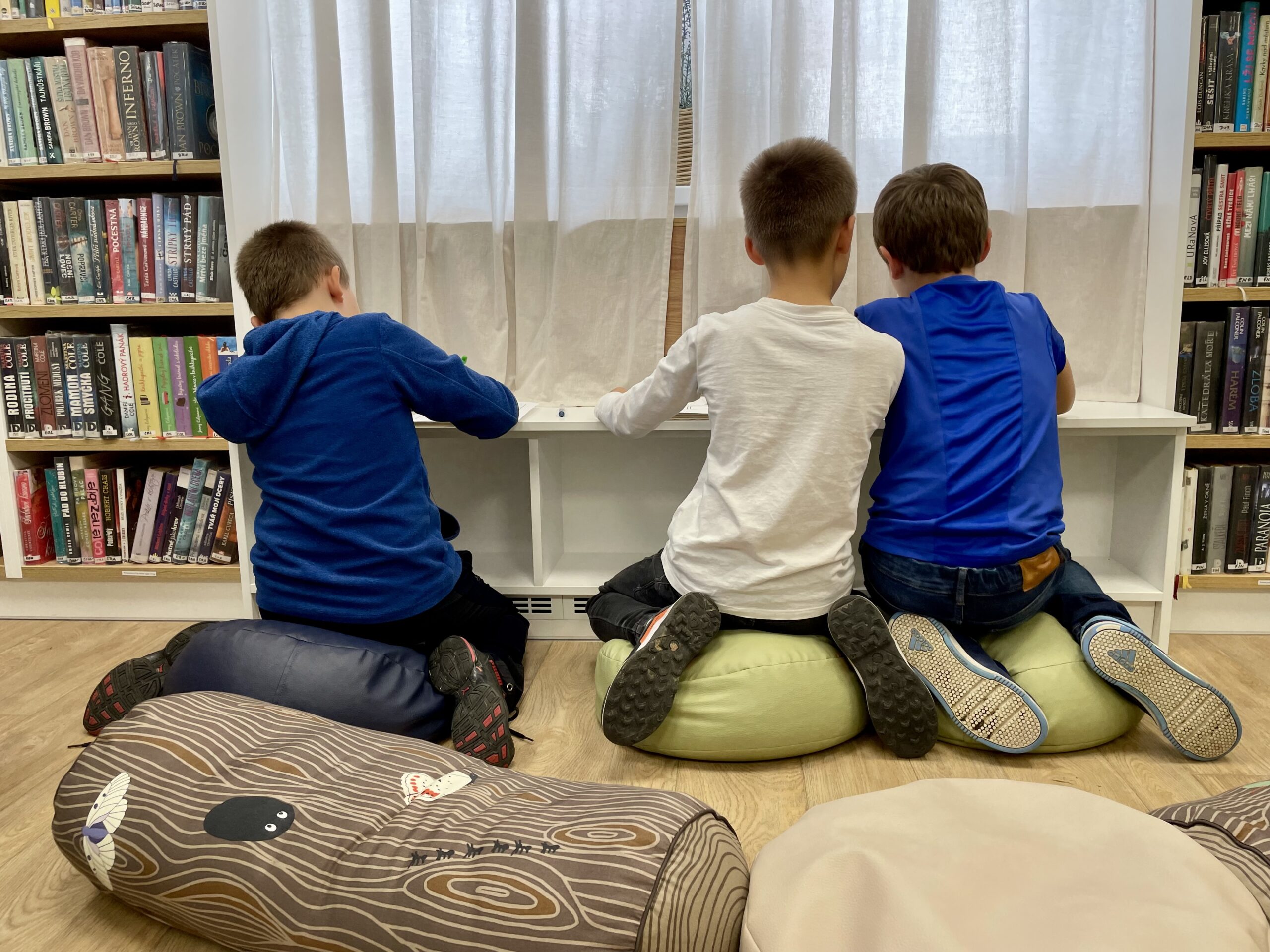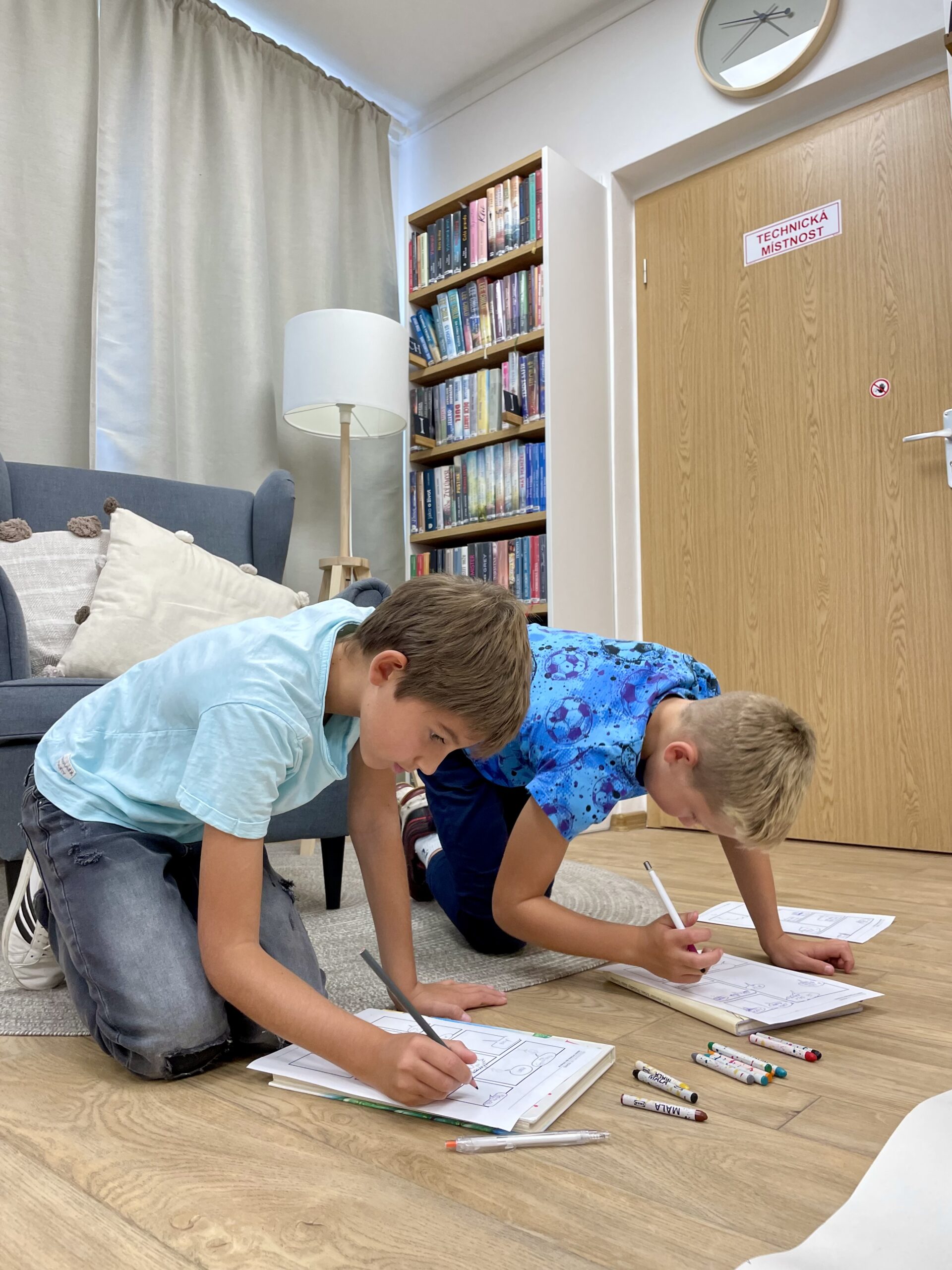 Oproti tomu čtvrťáci, kteří už knihovní pravidla znají jako své boty (viďte?), věděli kudy kam, a tak se na zajímavé knihy chtěli vrhat rovnou. Přísná knihovnice si však i pro ně připravila mučicí aktivitu v podobě tvorby vlastního komiksu, do které se nakonec zabrali natolik, že na ty žádané knihy tolik času nezbylo. Na optimističtějších literárních tématech zapracujeme příště.