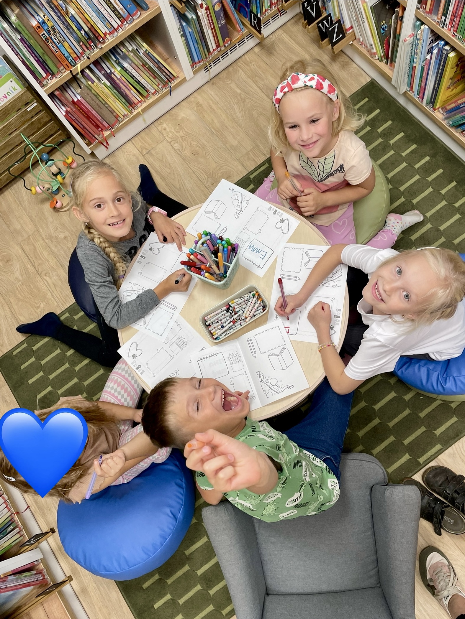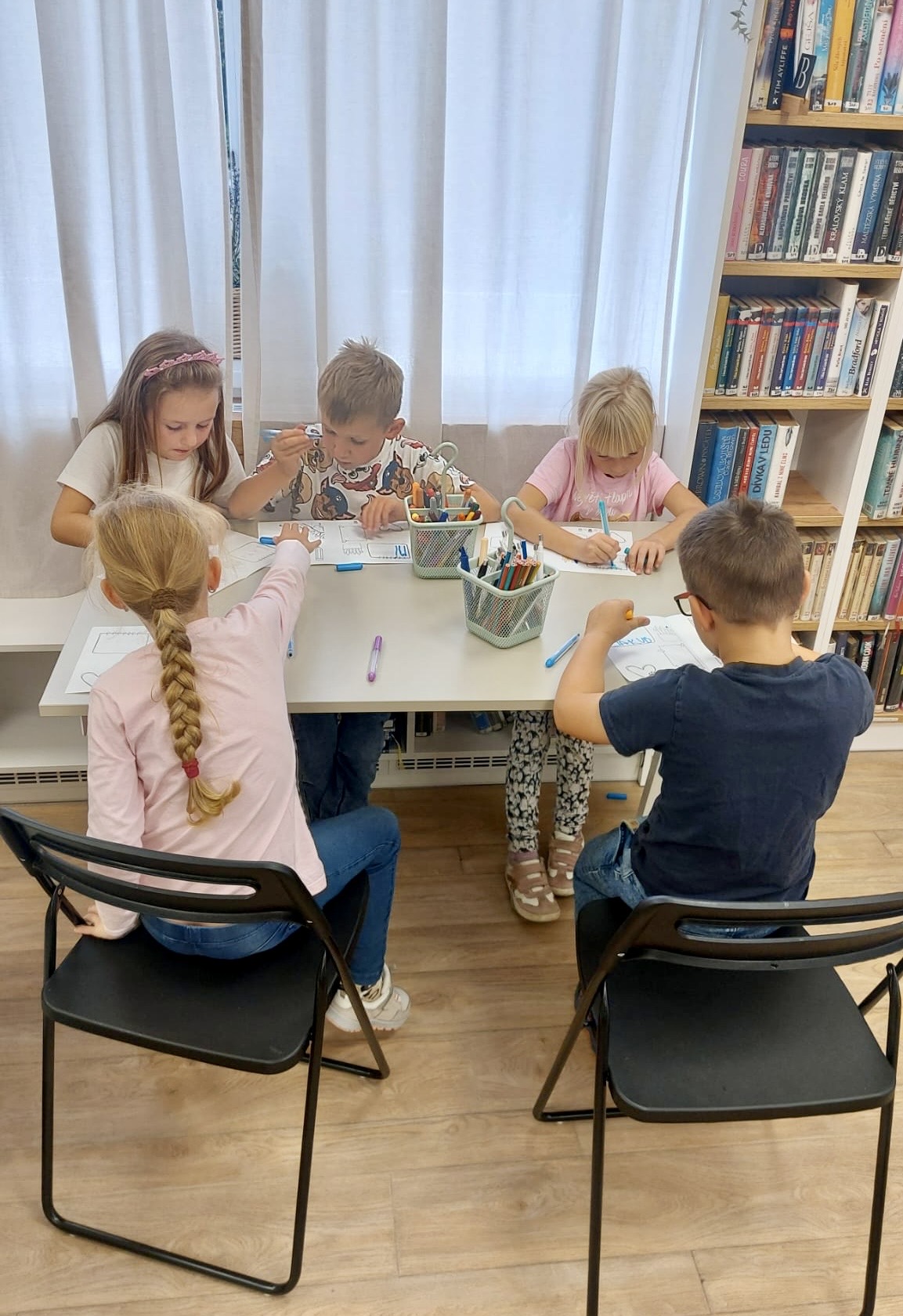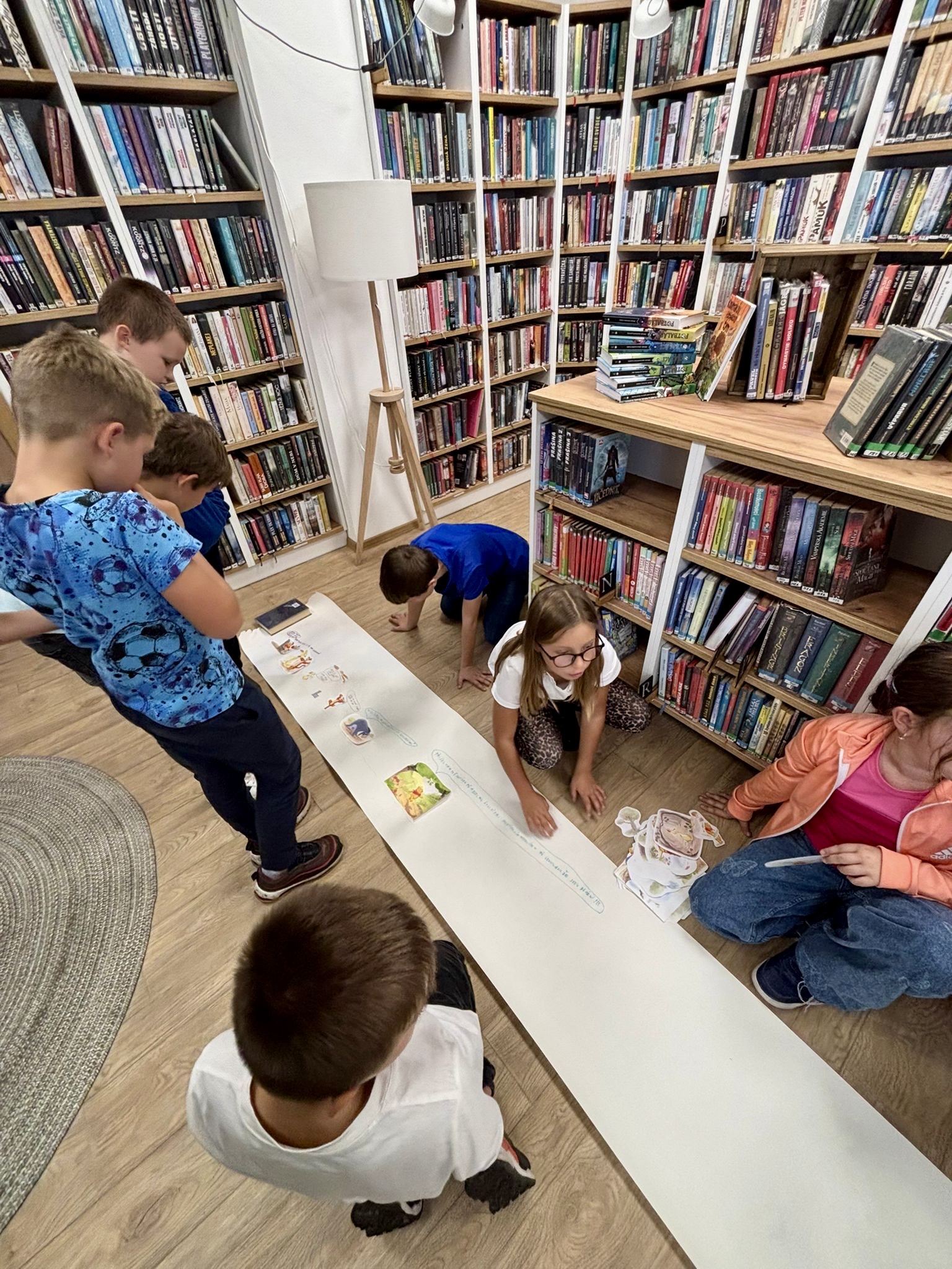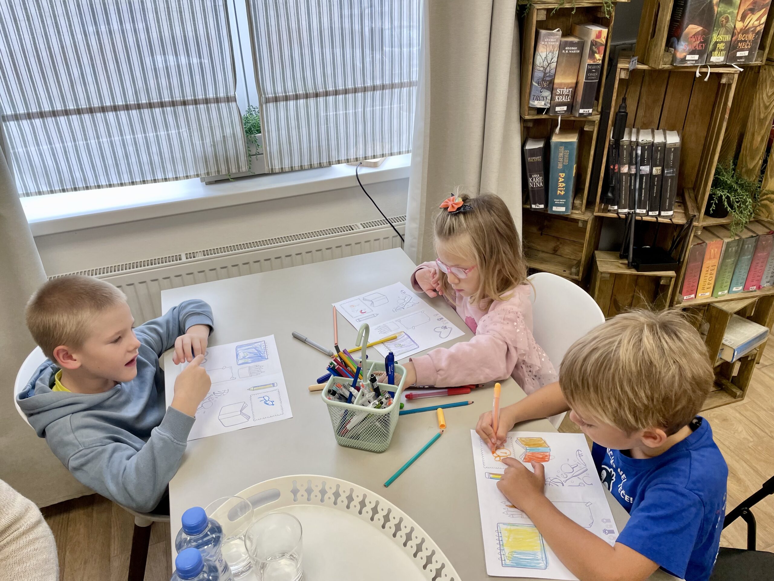 Oproti tomu čtvrťáci, kteří už knihovní pravidla znají jako své boty (viďte?), věděli kudy kam, a tak se na zajímavé knihy chtěli vrhat rovnou. Přísná knihovnice si však i pro ně připravila mučicí aktivitu v podobě tvorby vlastního komiksu, do které se nakonec zabrali natolik, že na ty žádané knihy tolik času nezbylo. Na optimističtějších literárních tématech zapracujeme příště.