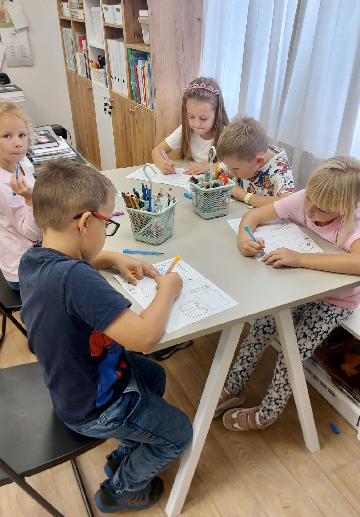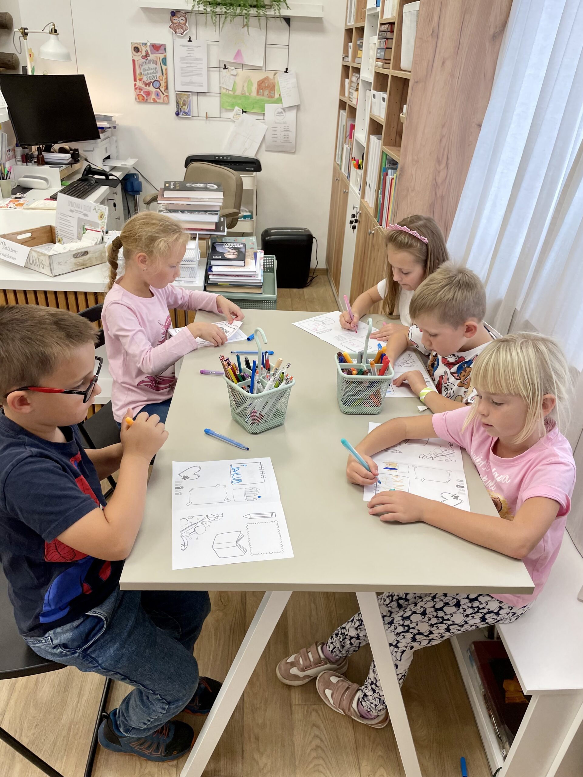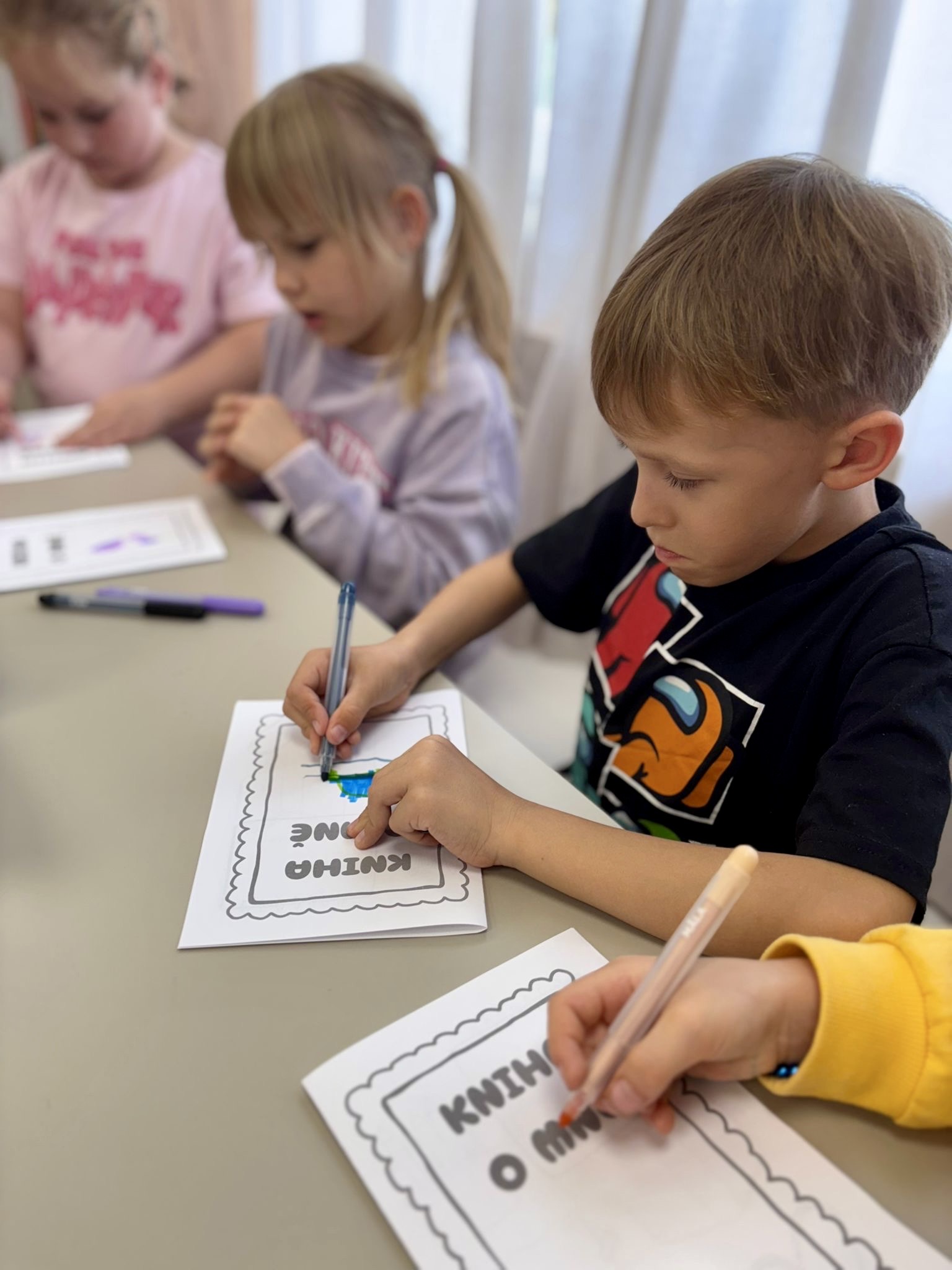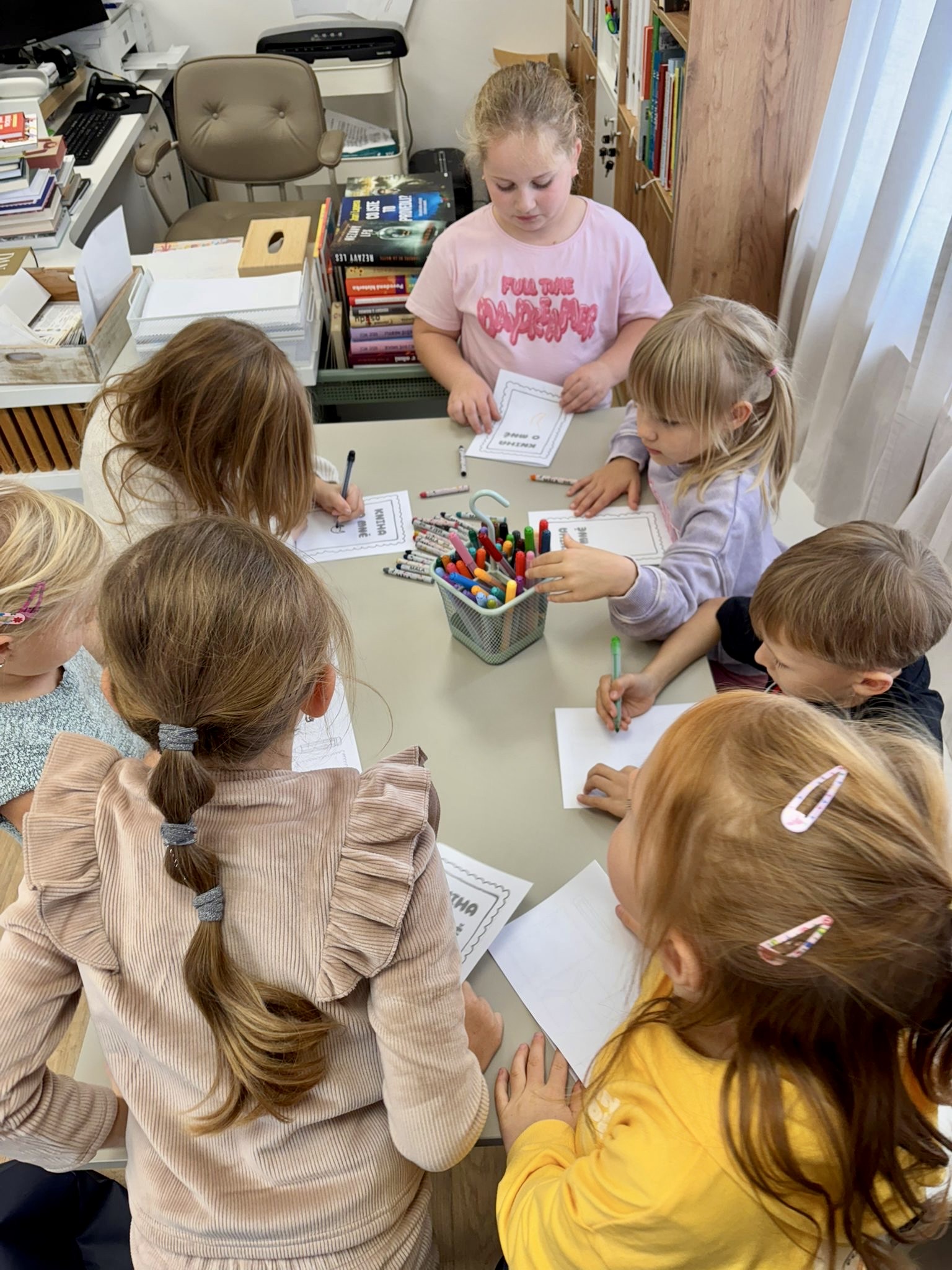 Oproti tomu čtvrťáci, kteří už knihovní pravidla znají jako své boty (viďte?), věděli kudy kam, a tak se na zajímavé knihy chtěli vrhat rovnou. Přísná knihovnice si však i pro ně připravila mučicí aktivitu v podobě tvorby vlastního komiksu, do které se nakonec zabrali natolik, že na ty žádané knihy tolik času nezbylo. Na optimističtějších literárních tématech zapracujeme příště.