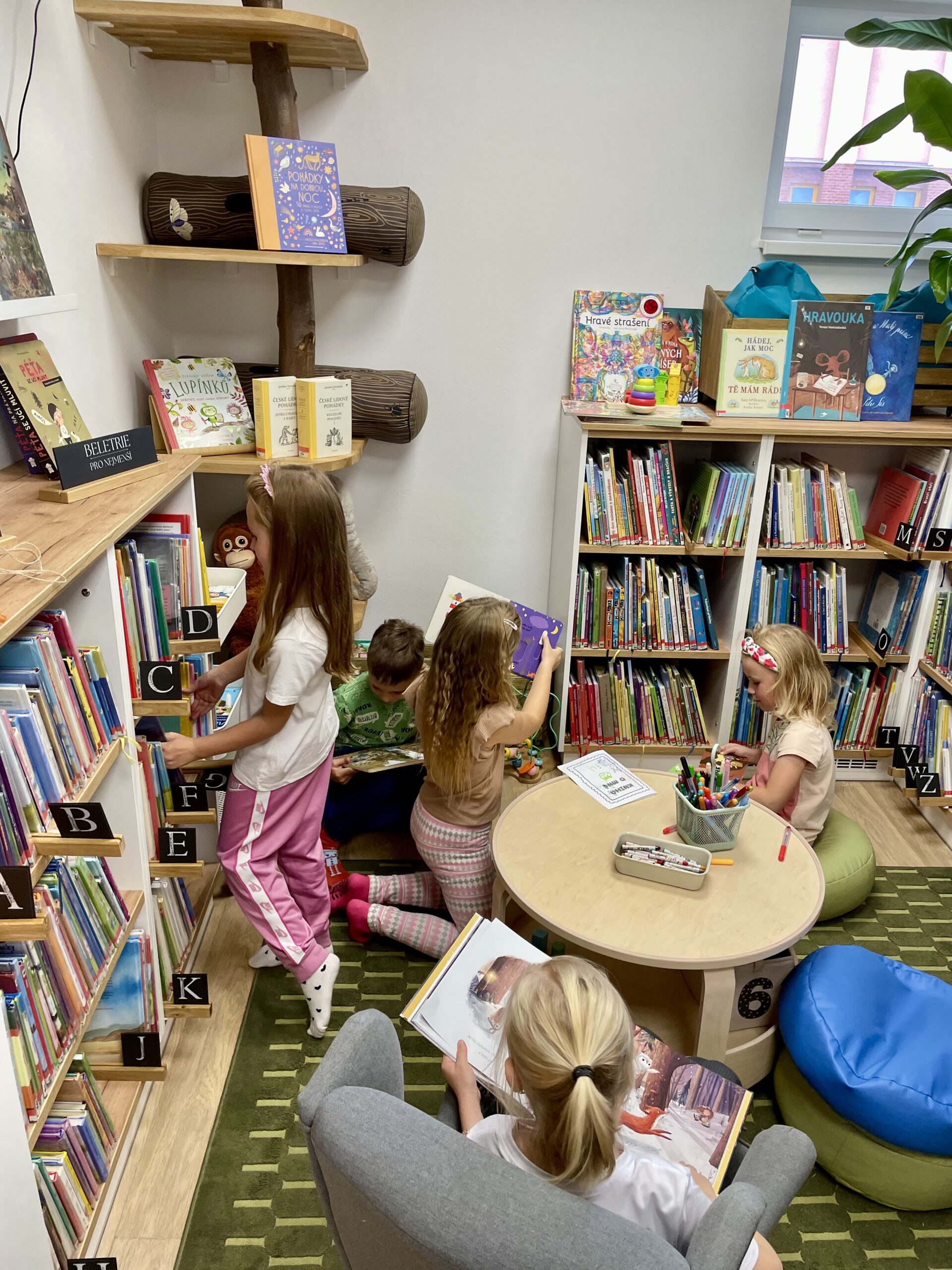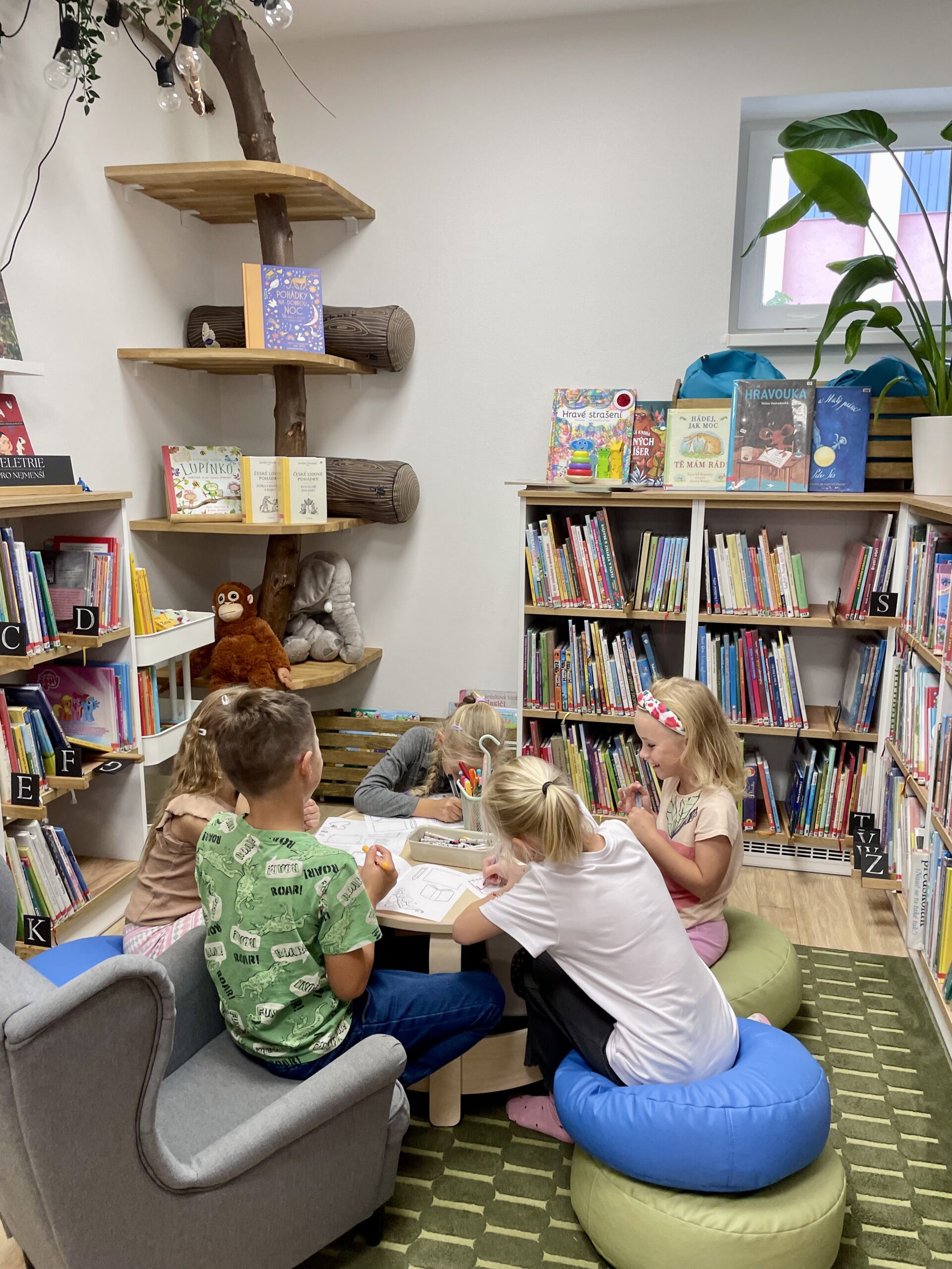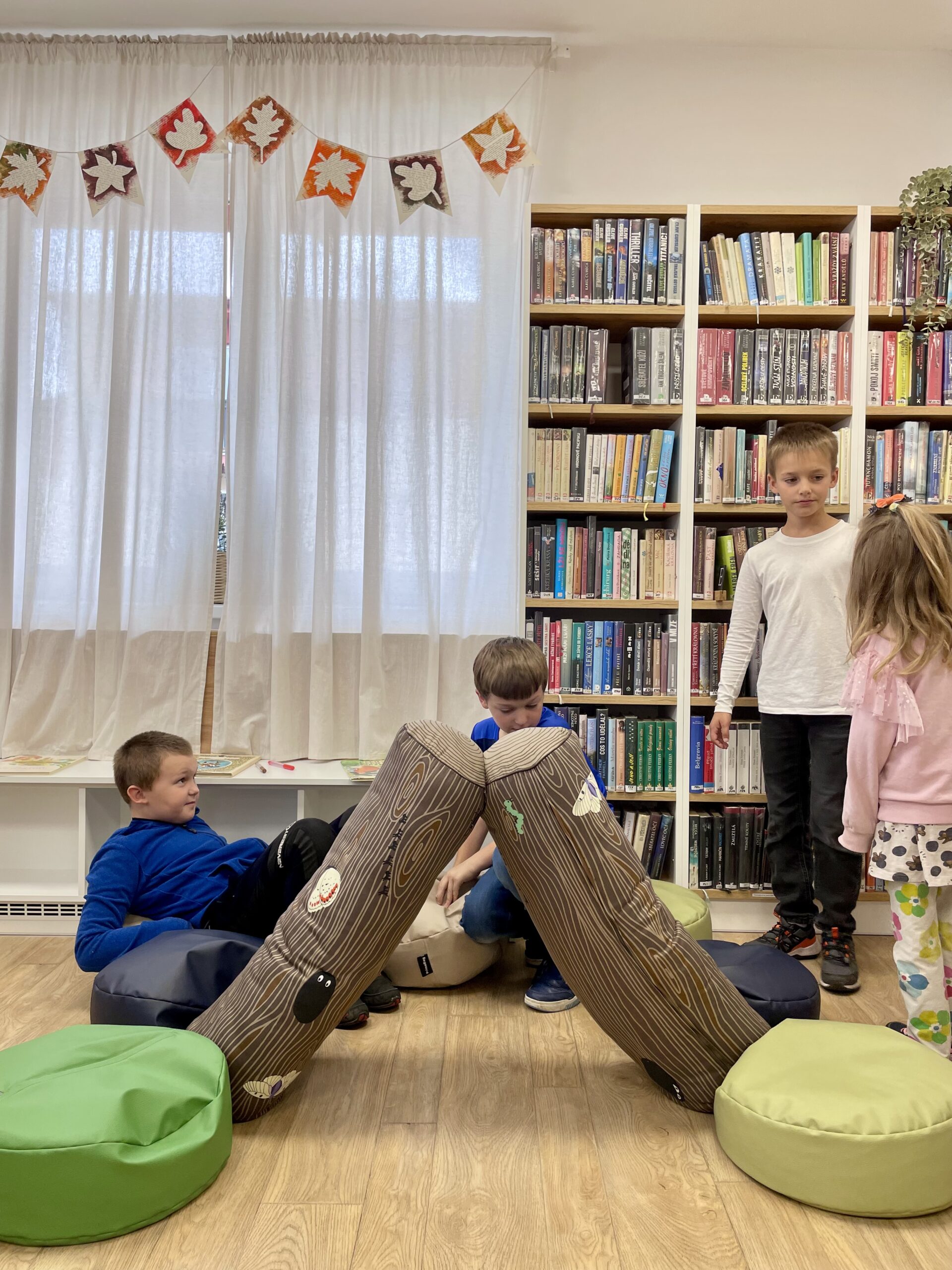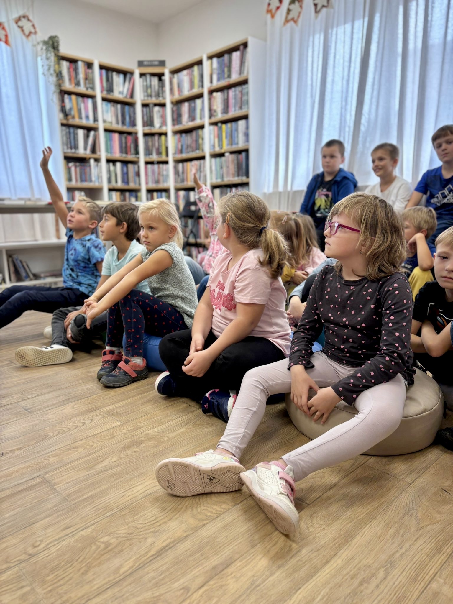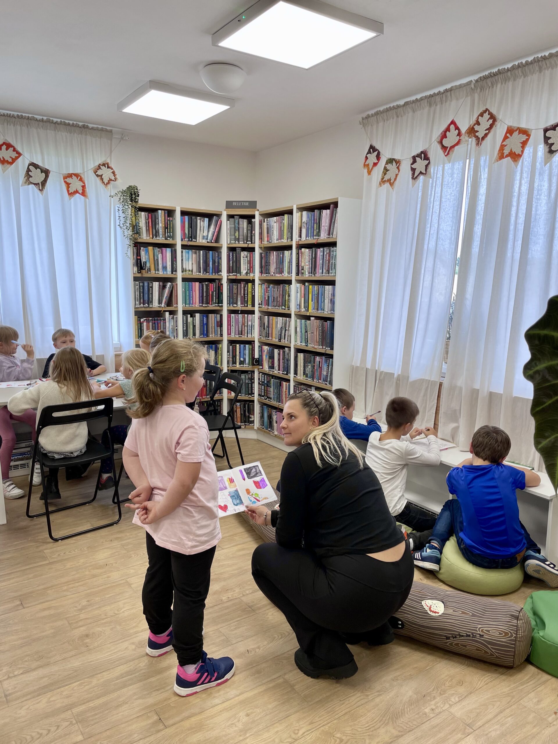 Příchod podzimu znamená nejen ten krásně svěží vzduch a kaštany spadané v pestrobarevném listí, ale také první plískanice, dlouhé deště a ne úplně příjemné počasí. To by ve škole vadit nemuselo, na druhou stranu v družině, kam se vám po vyučování nahrne hromada pohybuchtivých dětí, které v lavici strávily několik předchozích hodin, může být černá obloha nemilou překážkou. No a protože máme v Tlučné uvědomělé paní družinářky, tak v takových dnech přivedou občas děti k nám do knihovny. To vám tu, panečku, bývá živo.