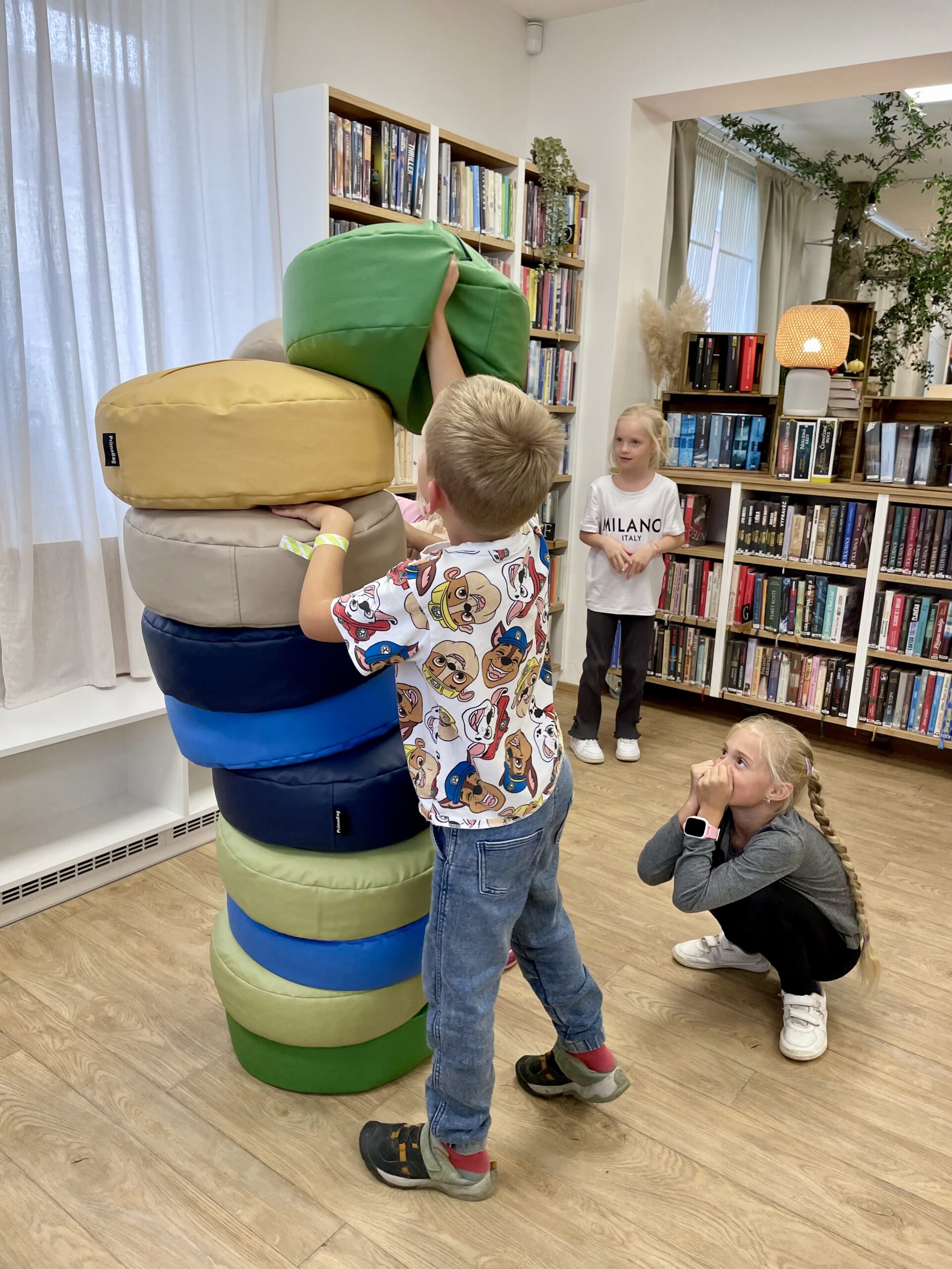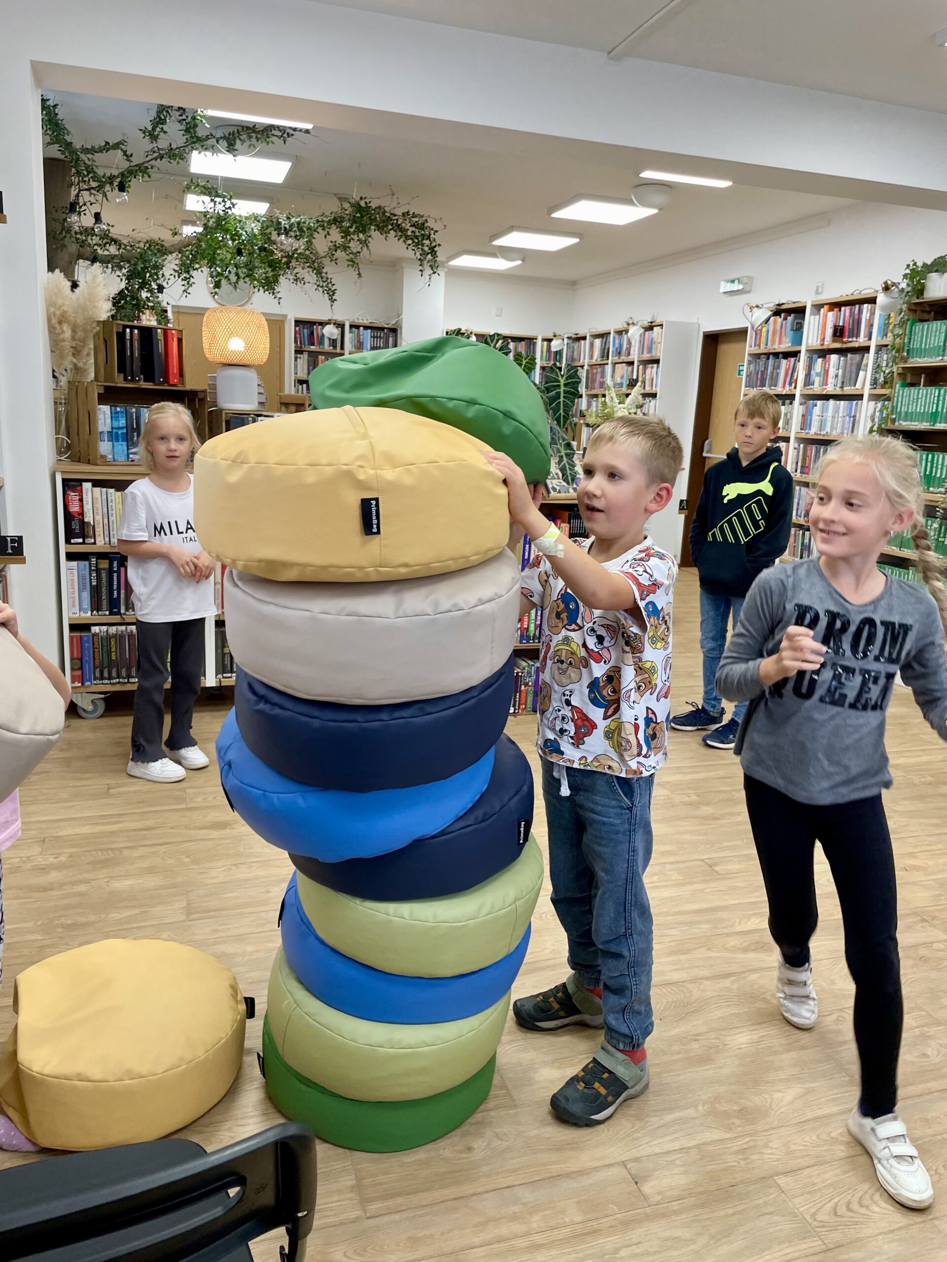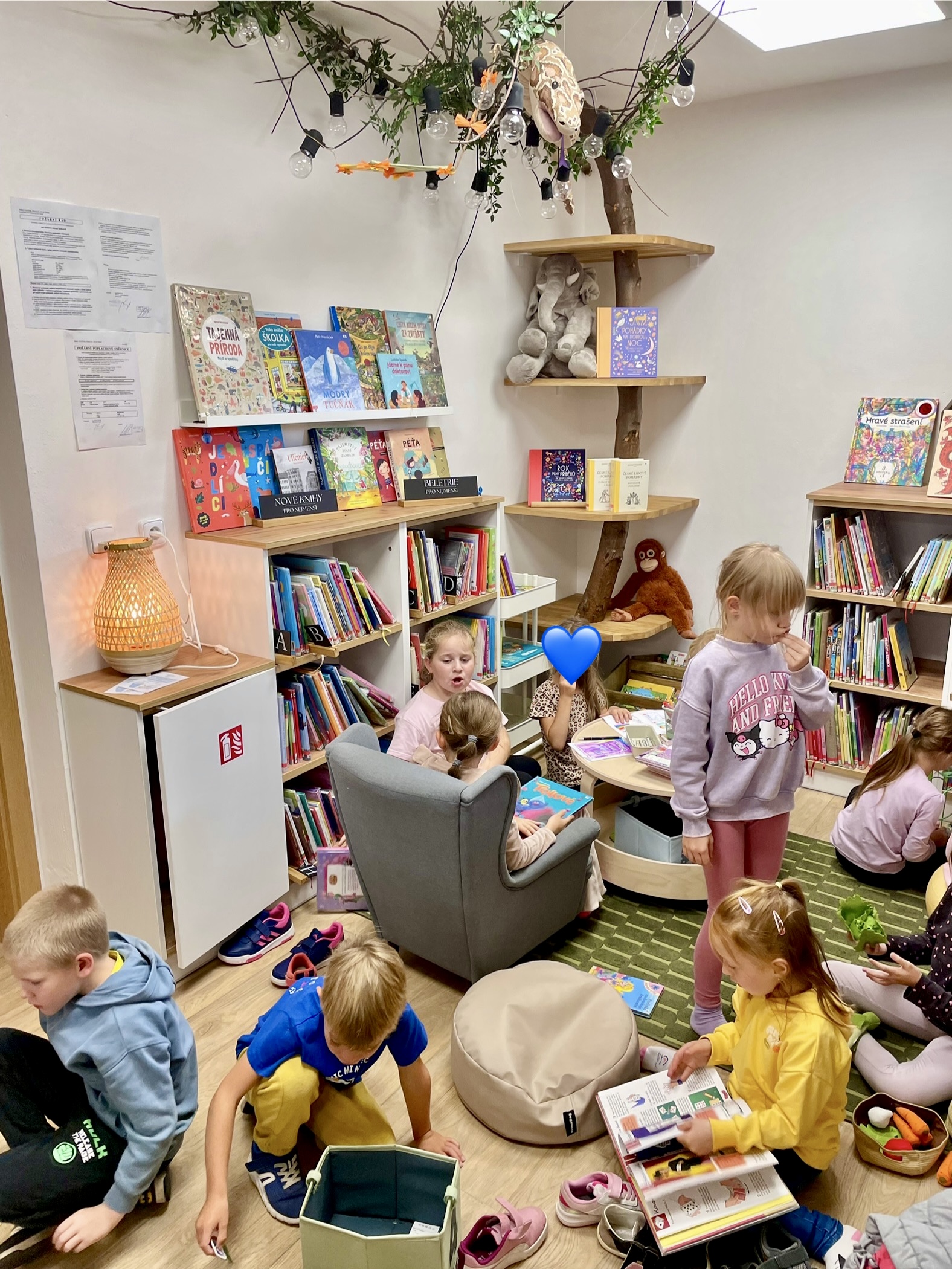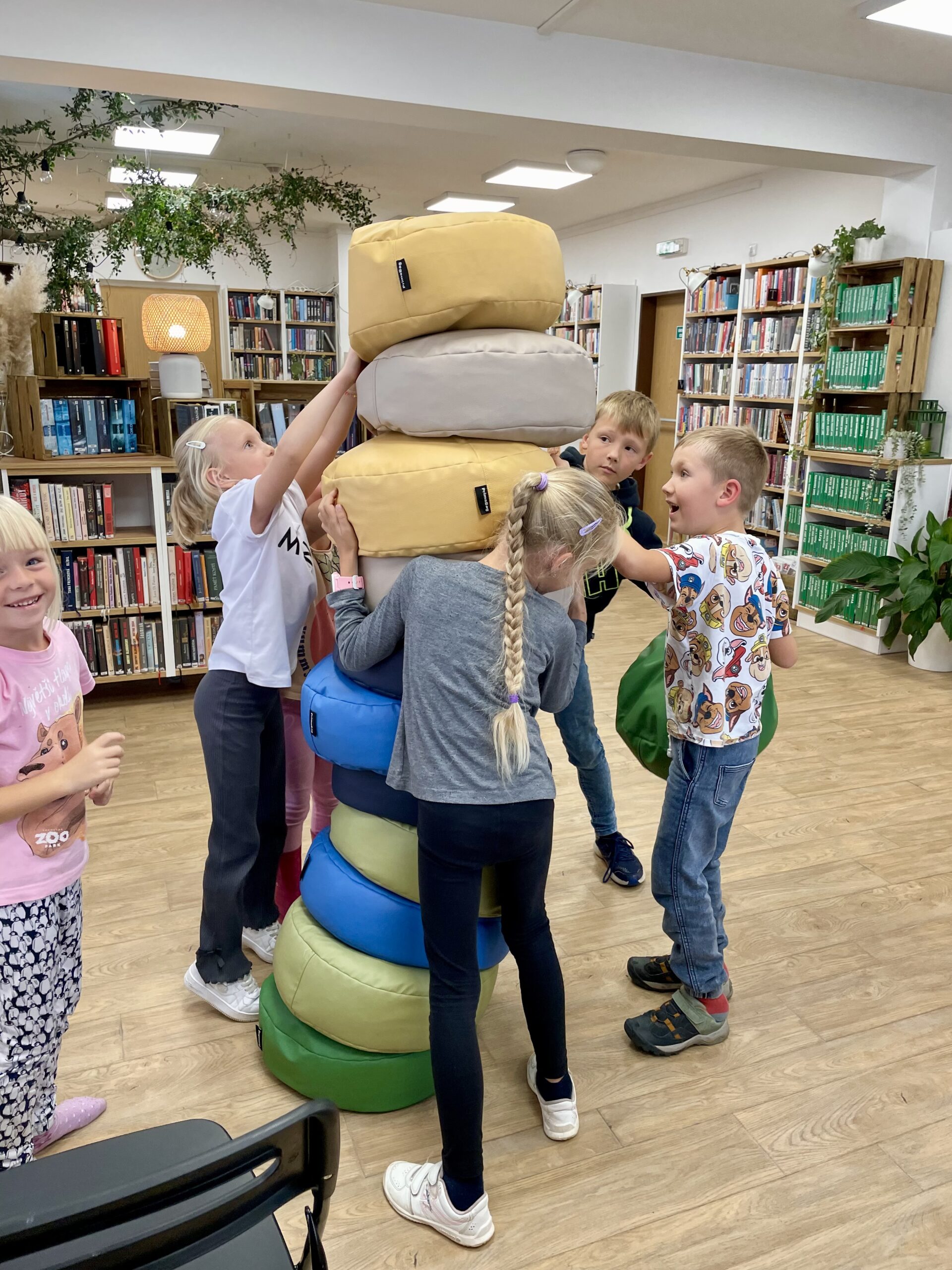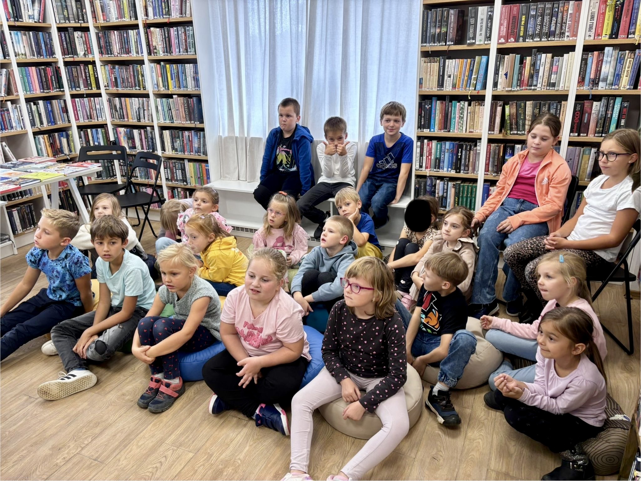 Příchod podzimu znamená nejen ten krásně svěží vzduch a kaštany spadané v pestrobarevném listí, ale také první plískanice, dlouhé deště a ne úplně příjemné počasí. To by ve škole vadit nemuselo, na druhou stranu v družině, kam se vám po vyučování nahrne hromada pohybuchtivých dětí, které v lavici strávily několik předchozích hodin, může být černá obloha nemilou překážkou. No a protože máme v Tlučné uvědomělé paní družinářky, tak v takových dnech přivedou občas děti k nám do knihovny. To vám tu, panečku, bývá živo.